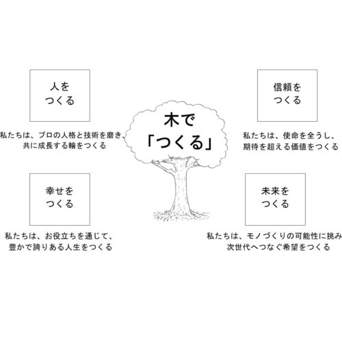 私たちの仕事における根幹的な存在である「木」を通して、4つの「つくる」を実現します。